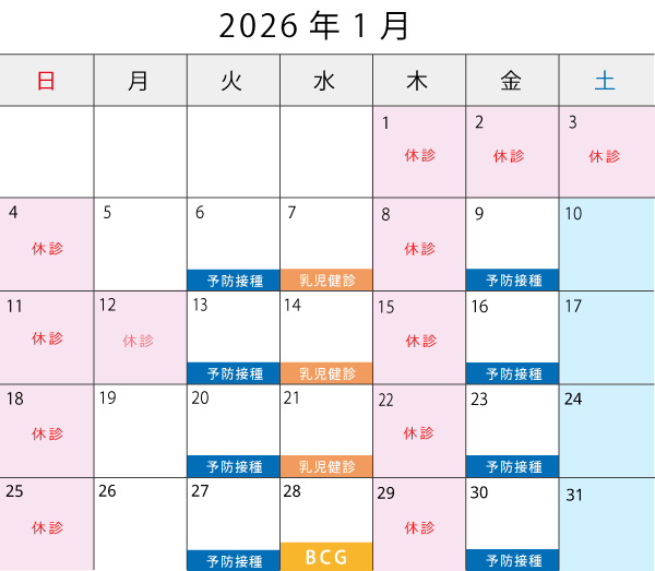 乳児健診(第4週BCG) 14:00-15:30
